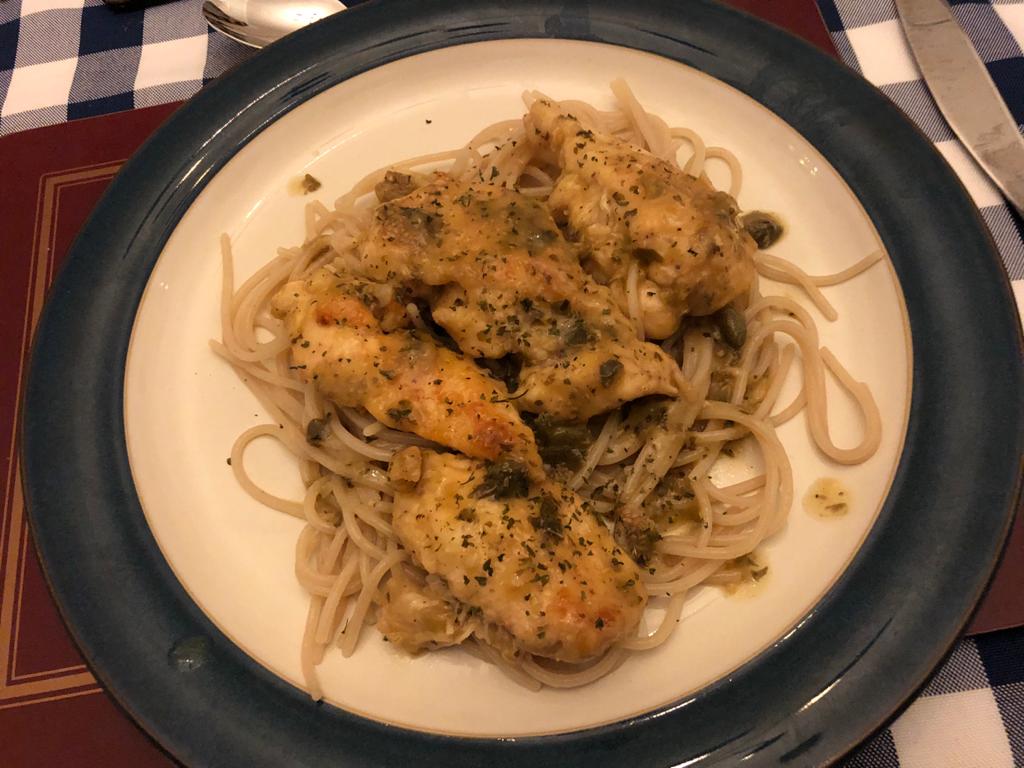 Remove skillet from heat add lemon juice, white wine and capers and scrape off brown bits from pan. Return skillet to hear and bring to a boil. Taste sauce add more salt and pepper if needed.