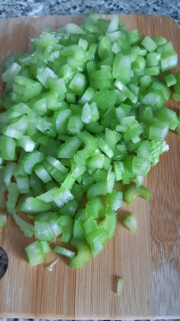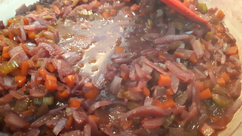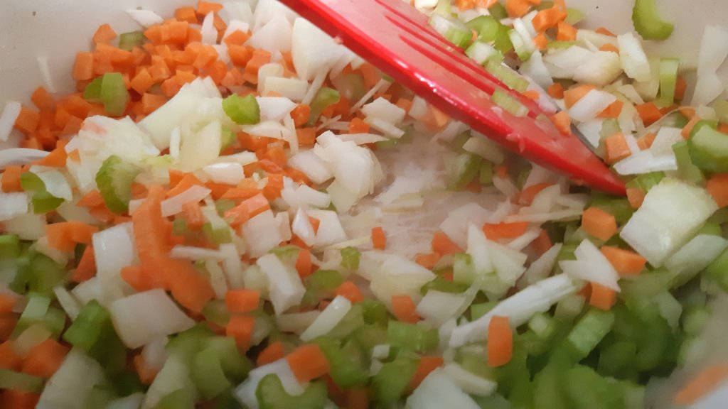 Next in the same pan add a table spoon of oil and add the onions, carrots and celery and cook then for about 15 minutes.