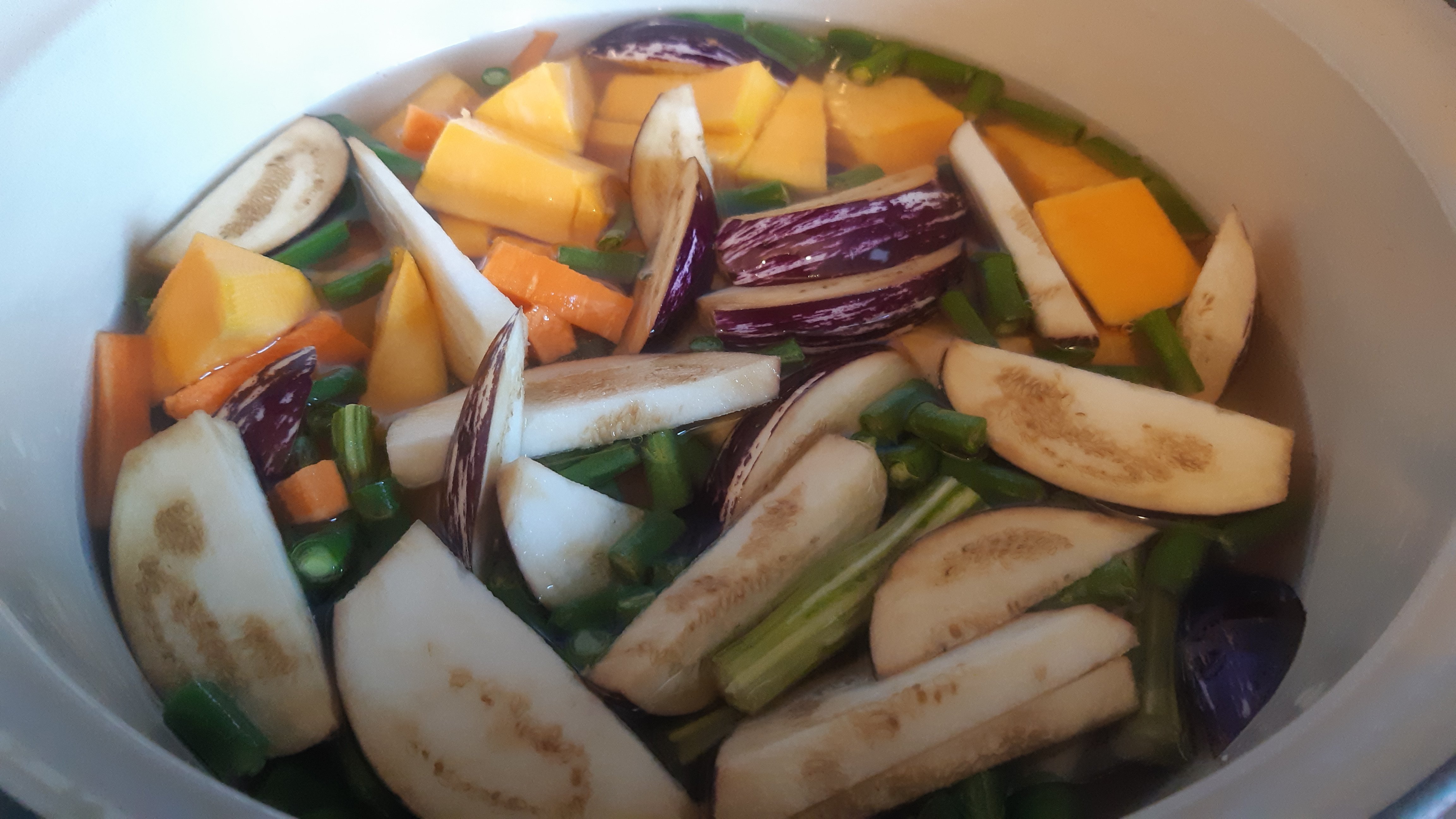 Place the chopped vegetables in a pot, add water to just about cover them and bring to a boil and cook till about half done.