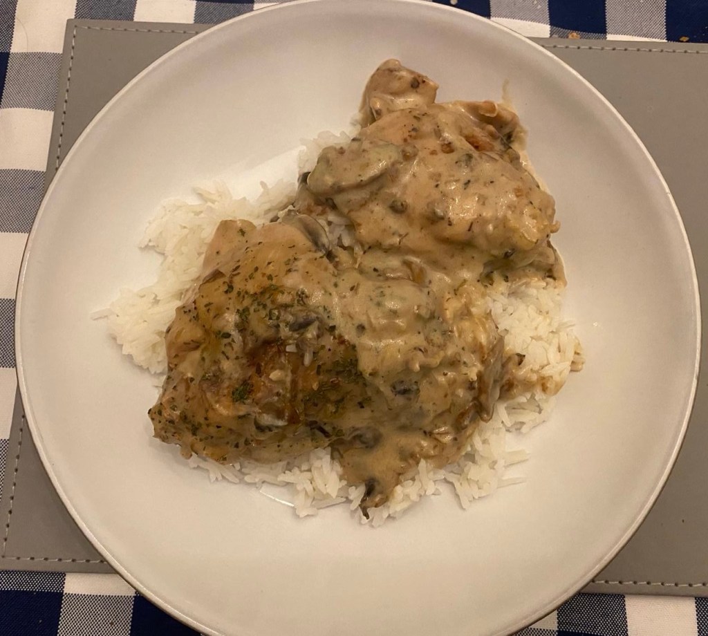 Traditional recipe calls for chicken thighs and drumsticks, my version is made using only chicken thighs and pantry staples like dried herbs instead of fresh. I love French cuisine, I mean you just can’t go wrong with butter and cream! Rich and creamy gravy and well done chicken. Another recipe that will be included on the dinner menu and possibly one to roll out when we have guests! It really feels like something off a restaurant menu.