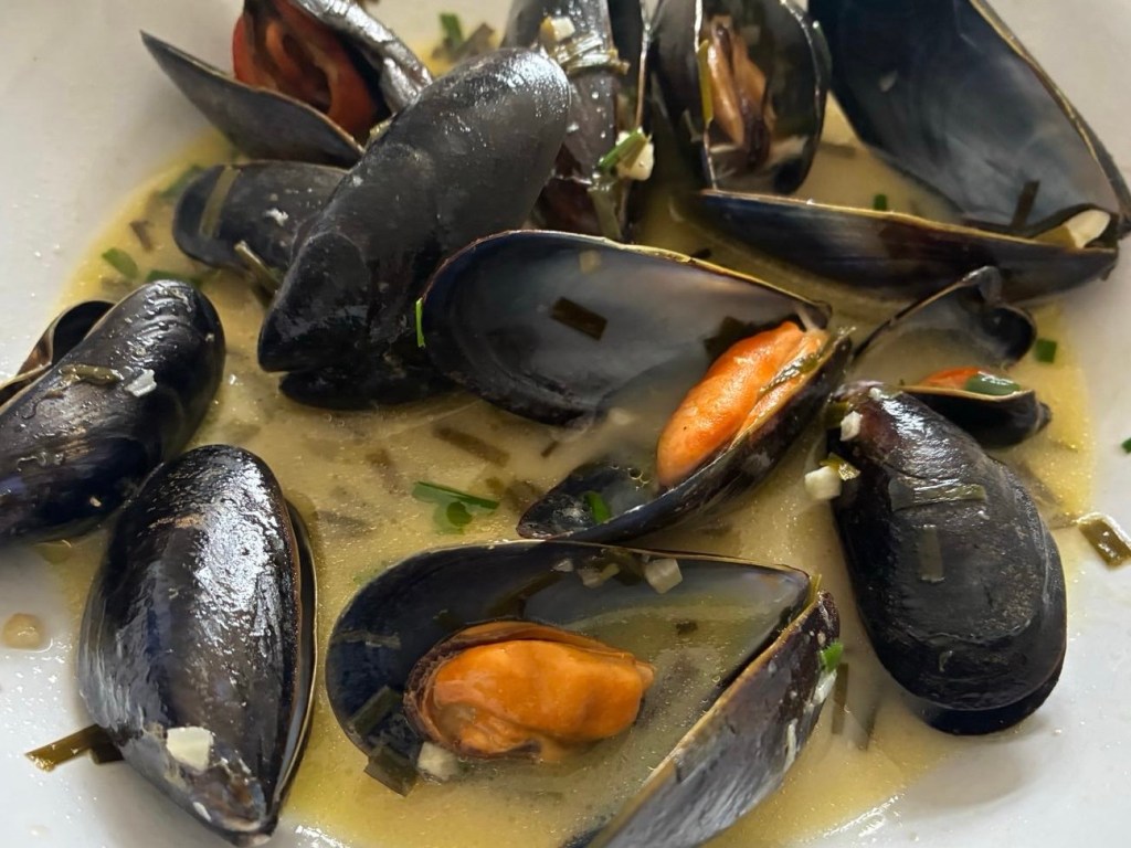 Rinse the mussels in cold water. Any open ones should close — if they don’t, they’re dead to you. Literally. Bin them. Pull out any beards you find.
